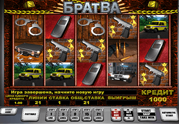 Bratva имеет 5 барабанов и 21 линию. Количество последних можно устанавливать на свое усмотрение. Чем больше полос задействовано в игре, тем выше вероятность победы и больший выигрыш. Правда, и общая ставка на раунд будет выше. Дабы снизить риск, вы можете поставить самый минимум – 1 монету на спин. Но если вы живете по принципу «Все или ничего», идите ва-банк с максимальной ставкой по 100 на каждую линию, и да пребудет с вами Удача!