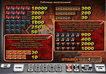 Выигрышной комбинация считается только в том случае, если на барабанах выпадет от 3 до 5 одинаковых символов, начиная с крайнего левого. Если последовательность будет начинаться со второго или третьего барабана, призовой она не считается. Итоговая сумма выигрыши зависит от количества символов и типа картинок – каждая из них имеет свой коэффициент, который можно узнать, открыв таблицу выплат. Формула подсчета призовой суммы следующая: коэффициент комбинации, умноженный на ставку на линию. Сразу можно сказать, что максимальный выигрыш здесь неплохой: если вам повезет, вы сможете сорвать джекпот в 100 000 монет, а это довольно крупная сумма.