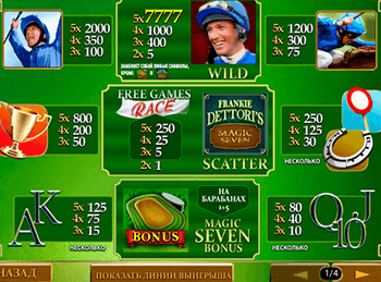 Коллекцияонлайн казино Vulkan на деньгивпечатлит и новичков, и опытных игроков. Среди ассортимента новых игр 3D выделяется автомат Frankie Dettori’s Magic Seven со спортивной тематикой. Модель Фрэнк Деттори, выпущенная создателем софта Playtech, представлена на официальном сайте Вулкан Платинум для посетителей. Запустив ее, любители азарта будут крутить барабаны и наблюдать за событиями, разворачивающимися на мониторе.