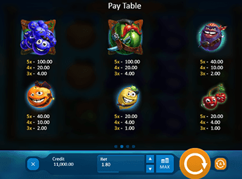 Слот-машина впечатляет всех гемблеров удивительно красивым дизайном. Пятнадцать ячеек набора барабанов расположились на фоне острова сокровищ, по ним перемещаются красочные картинки с изображениями вооруженных фруктов и ягод. Решив играть на деньги в автомат Счастливые Пираты, вы увидите озорных вишенок и забияк-лимонов, заводных апельсинов и сердитых слив, солидных арбузов и злых попугаев. При составлении выигрышных комбинаций символы демо эмулятора словно оживают, радуя геймеров оригинальной анимацией, а звон выдаваемых монет добавляет еще больше позитива в азартную игру.